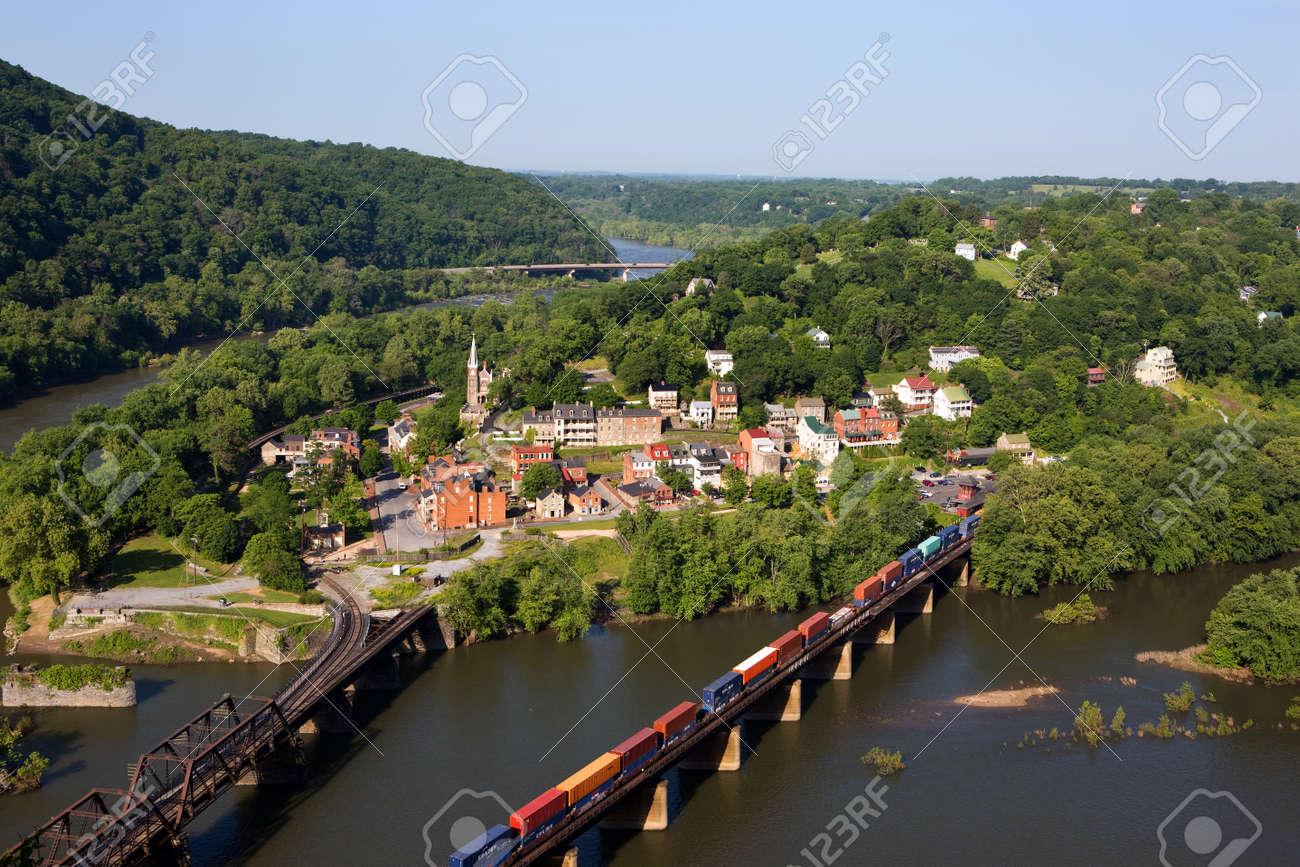 電車をシェナンドー川撮含むハーパーズ フェリー国立歴史公園には ポトマック川とシェナンドー川との間に位置するウェスト バージニア州ハーパーズ フェリー町で します の写真素材 画像素材 Image