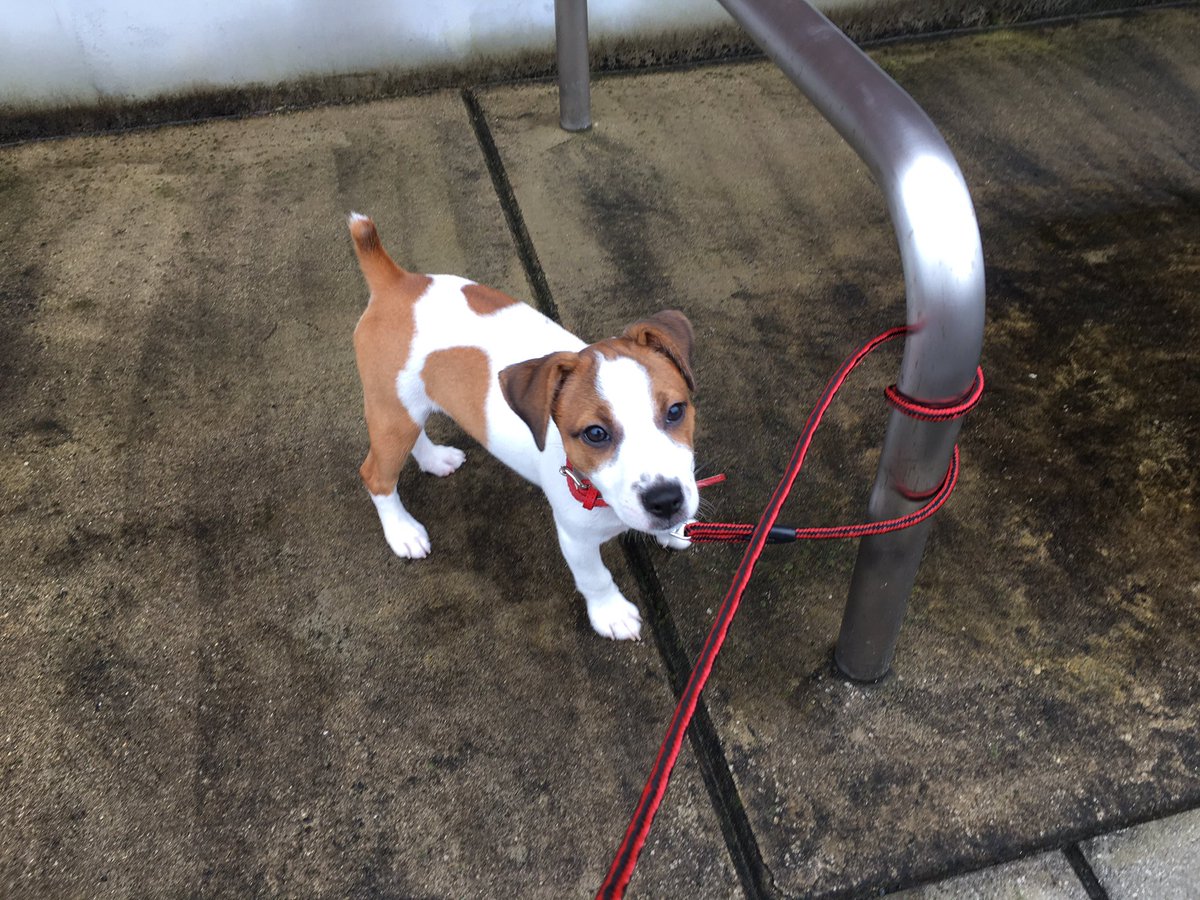 なのは ジャックラッセルテリア お散歩するまでには しっかりした首輪とリードを用意しなくては 手作り首輪は可愛いけど 耐久性なし ジャックラッセルテリア Jrt ジャックラッセル