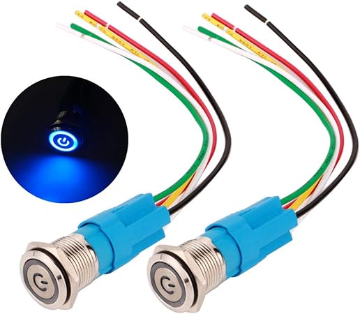 Amazon Kiligen 16 Mmステンレス鋼ラッチングプッシュボタンスイッチ12v 24v電源記号led 1no1nc Spdt Onオフワイヤーソケットプラグ付き防水トグルスイッチ 青色led ハーネス スイッチ 車 バイク