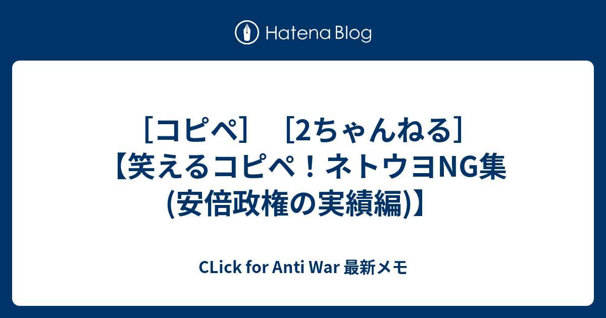 コピペ 2ちゃんねる 笑えるコピペ ネトウヨng集 安倍政権の実績編 Click For Anti War 最新メモ