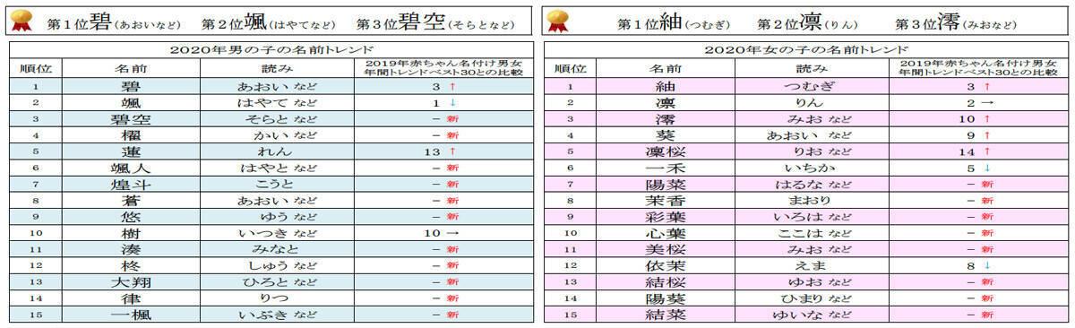 2020 2021年女の子の名前ランキングベスト30 Mnkニュース By 名字由来net 名字 苗字 名前 家系図 家紋 神社 お寺 専門no 1ニュースサイト